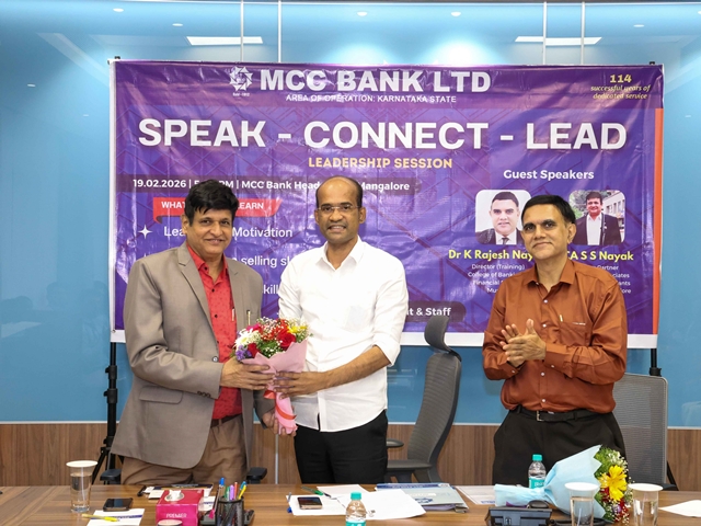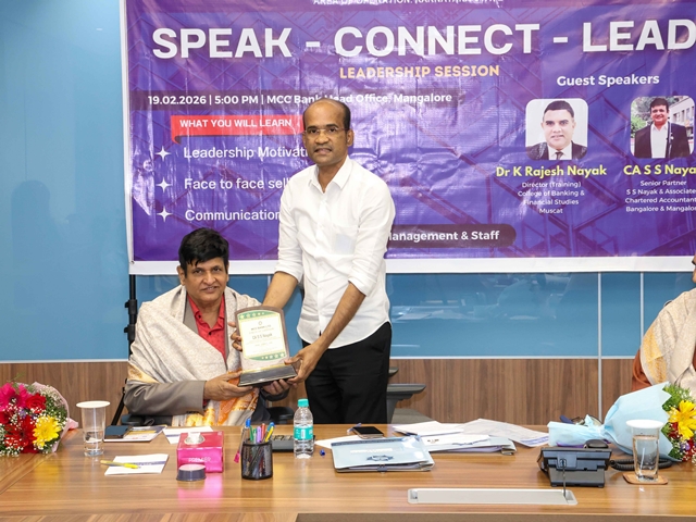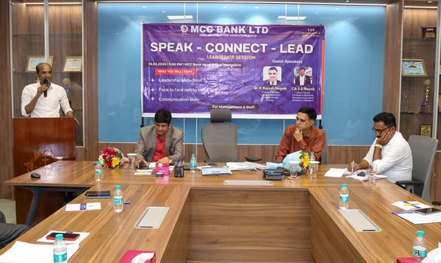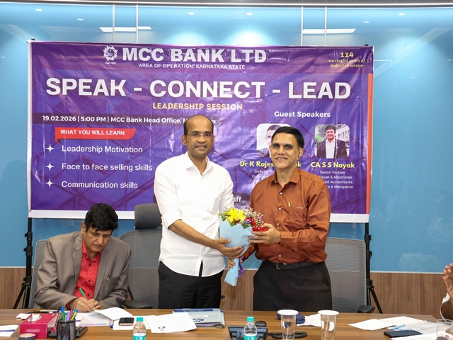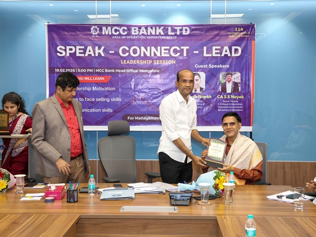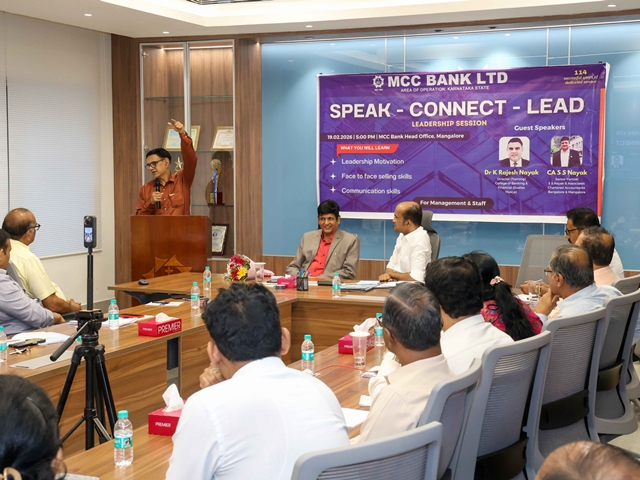 Mangaluru, Feb 20: In a significant initiative aimed at strengthening leadership capabilities and enhancing organizational performance, MCC Bank organized a Session on leadership motivation, face-to-face selling skills, and communication skills titled “Speak, Lead and Connect” on 19th February 2026 at the Board Meeting Hall of its Head Office in Mangalore.
