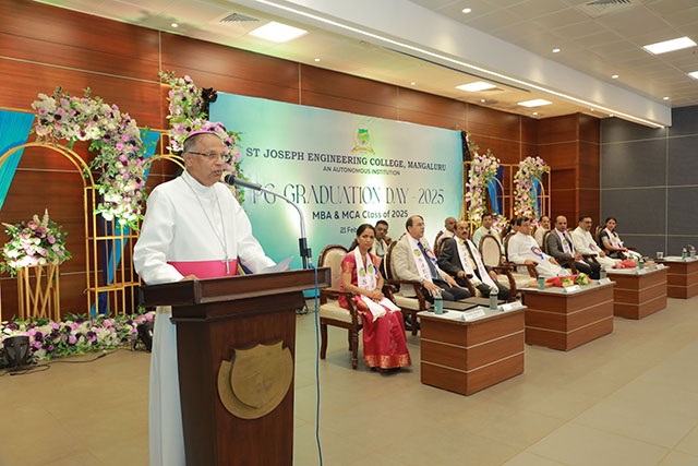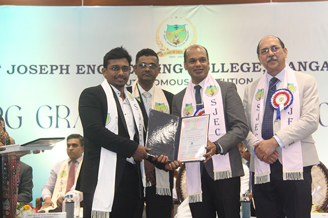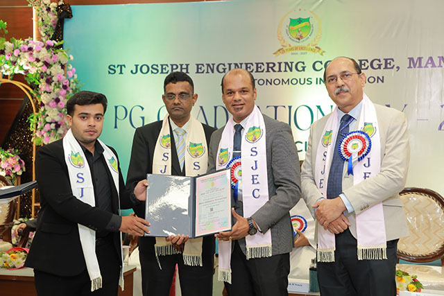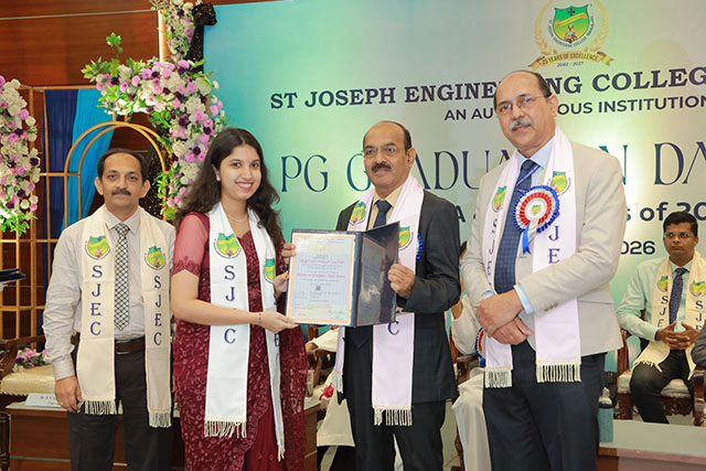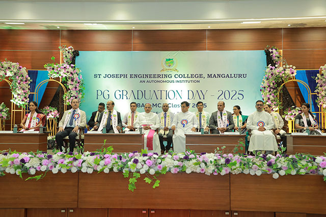 Mangaluru, Feb 21: The PG Graduation Day – 2025 of St Joseph Engineering College (SJEC), Mangaluru, was held on Saturday, February 21 at 10 am in the Kalam Auditorium of the college.