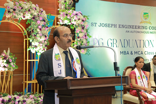 Fr Wilfred Prakash D’Souza, director of SJEC, delivered the welcome address, warmly greeting the chief guest, guest of honour, dignitaries, graduates, parents and faculty members on the solemn occasion. Principal Dr Rio D’Souza introduced the chief guest and the guest of honour of the ceremony.
