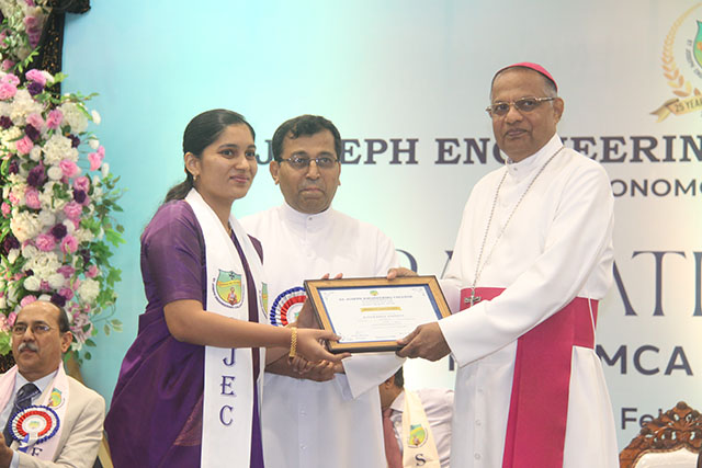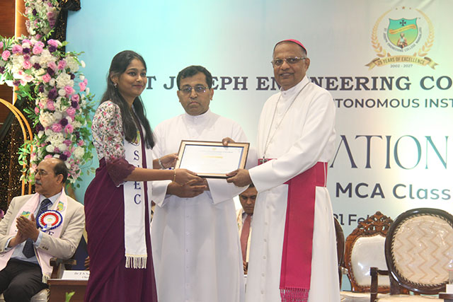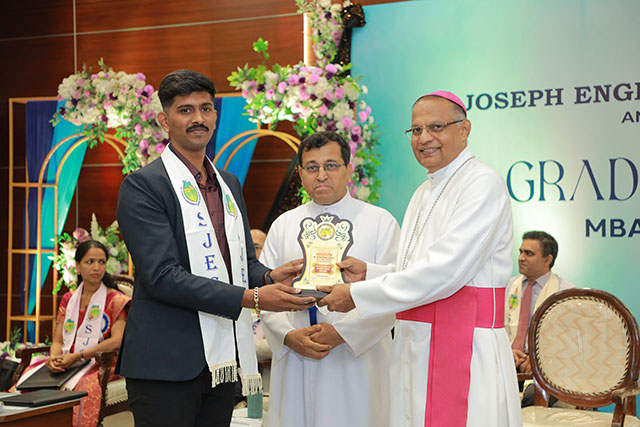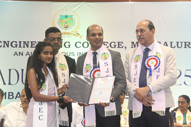 Dr T N Nagabhushana, vice chancellor, Kishkinda University, graced the occasion as the chief guest. John Rohan, client services manager, Global E-SoftSys Pvt Ltd and alumnus (MBA batch 2007–2009), was the guest of honour. Dr Peter Paul Saldanha, Bishop, diocese of Mangalore and president of SJEC, presided over the function.