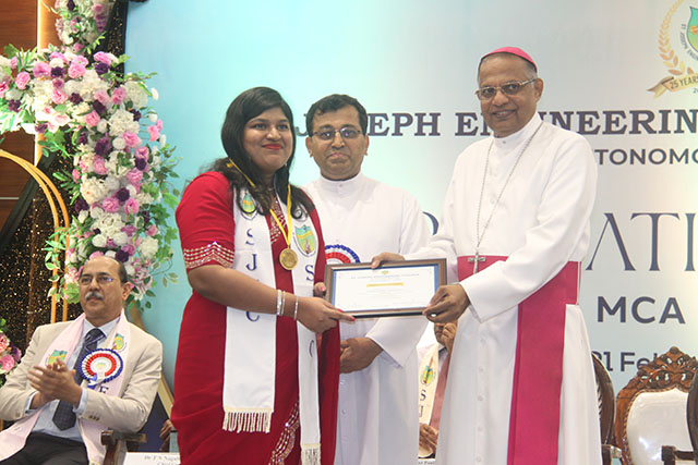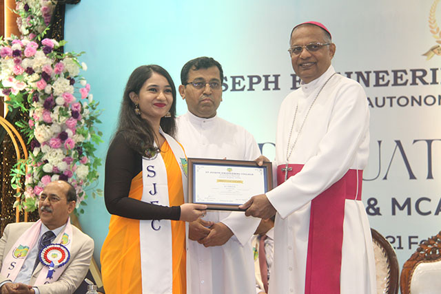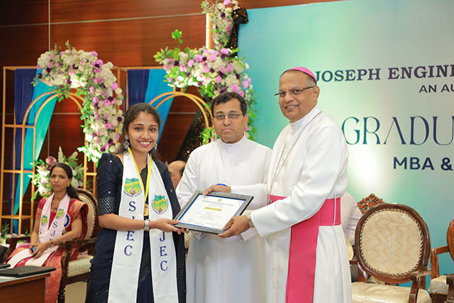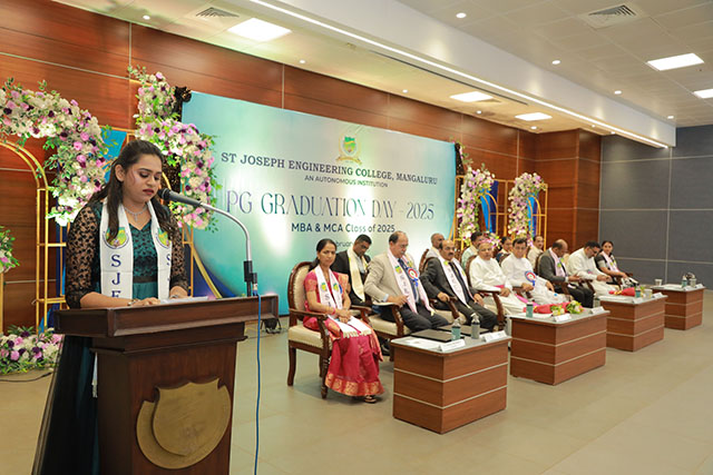 The presentation of certificates was the highlight of the ceremony, where the graduates of MBA, MCA and MBA (IEV) were conferred their postgraduate degrees in the presence of the dignitaries. Dr Rio D’Souza, principal of SJEC, administered the graduation oath, wherein the graduates solemnly pledged to uphold ethical values and professional responsibilities in their respective careers.