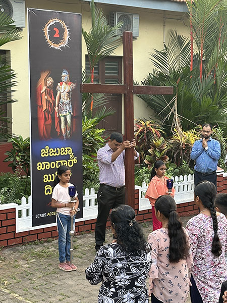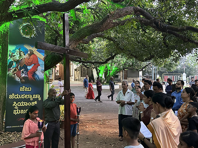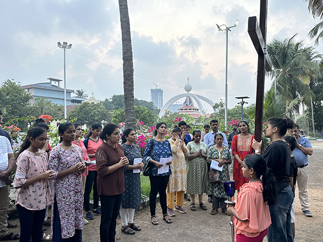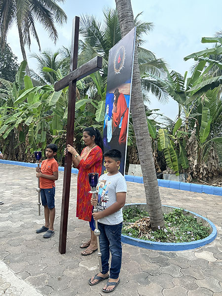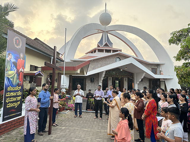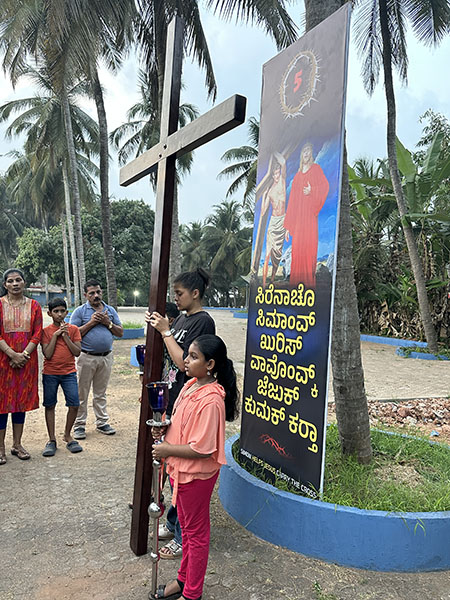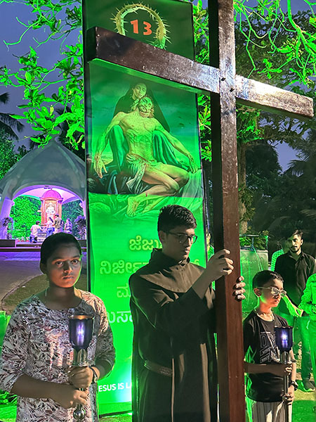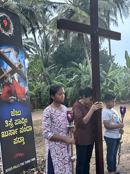 During the devotion, participants took turns carrying a wooden cross, symbolising their willingness to share in Christ’s suffering. The reflections for each station were led by the Bethany Sisters under the guidance of Sr Reena D’Souza, superior of Santa Cruz Convent, Kulshekar.