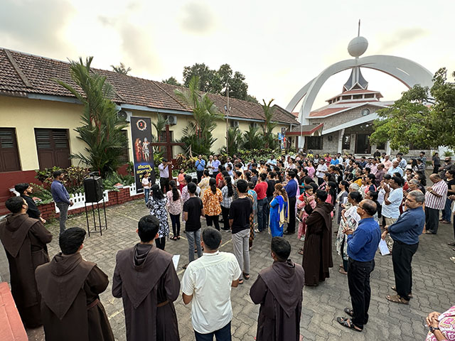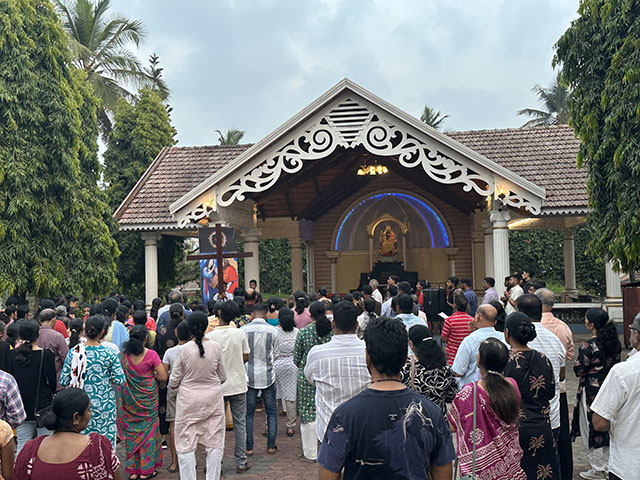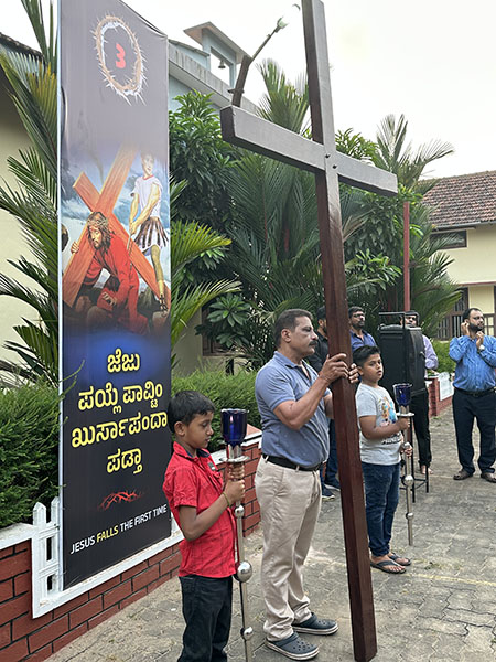 Mangaluru, Feb 22: The Infant Jesus Shrine, Bikarnakatte organised an open-air way of the cross on Sunday, February 22, marking the first Sunday of Lent. Despite it being a busy Sunday, a large number of faithful gathered to participate in the Lenten devotion.