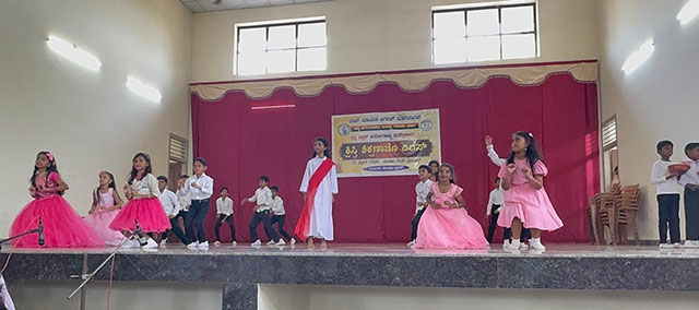 The solemn holy Eucharist marked the beginning of the day’s celebration. The Mass was presided over by Dr Edward Barretto, Coadjutor bishop of the diocese of Darjeeling, who served as the main celebrant and guest of honour. He was assisted by the parish priest, Fr Anil Canute D’Mello and Fr Naveen Pinto, principal of Deva Matha English Medium School. The celebration was inspired by the motto, "We are little children, the fruits of God's Kingdom".