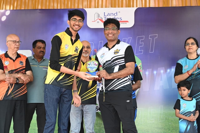 This season saw enthusiastic participation from societies such as Solitaire, Maurishka Palace, Sai Grandeur, Habitat 154, and Nakshatra, along with teams representing Land Trades. The event was inaugurated by office bearers of various apartment owners’ associations, who unveiled the trophies and marked the opening ceremony with a ceremonial balloon release.