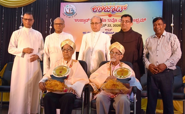 Udupi, Feb 23: The Udupi Diocesan fortnightly 'Uzwaad' marked the twelfth anniversary of its successful journey by honouring distinguished writers, awarding prizes to children who excelled in various competitions, and presenting a collage of devotional hymns ‘Mysterium’,staged by the Asthitva Group, Mangaluru, under the direction of Fr Alwyn Serrao.