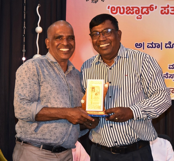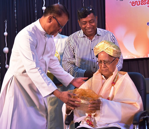 A significant highlight of Uzwaad’s twelfth anniversary celebration was the felicitation of two long-standing contributors — Dr Alphonse D’Lima and Valerian Menezes Kota. Before they were honoured by Bishop Gerald Isaac Lobo and the other dignitaries on the dais, Fr Denis D’Sa, PRO of the Udupi Diocese and Parish Priest of St Anne’s Church, Thottam, introduced the two distinguished writers to the audience. Dr Alphonse D’Lima has written for several periodicals and has been a consistent contributor to Uzwaad, offering articles on social and spiritual themes. Valerian Menezes has regularly contributed insightful pieces on contemporary political developments.