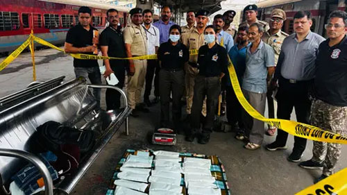 The train reached the platform at around 4:20 a.m., when railway staff noticed a heavy black bag left unattended inside one of the coaches. On inspection, officials found clothes along with several brown tape-wrapped packets, prompting suspicion of narcotics.