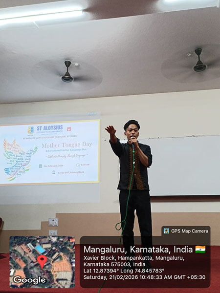 Mangaluru, Feb 26: St Aloysius (Deemed to be University), Mangaluru, School of Language and Cultural Studies organized a one-day programme on the occasion of International Mother Language Day with the theme 'Mother Tongue is My Identity' on February 21.