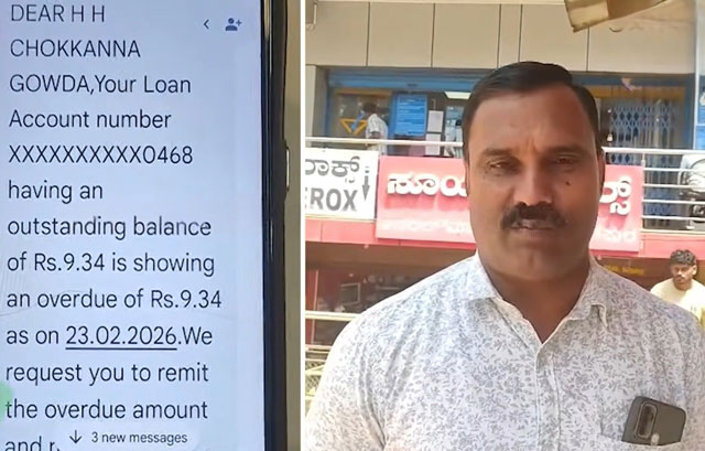 Charan, a resident of Sakleshpura taluk, received a phone call from bank staff informing him that Rs 9.34 was pending in his loan account and asking him to clear the dues. Immediately after receiving the call, Charan visited the bank without any delay and paid Rs 10 towards the outstanding amount.