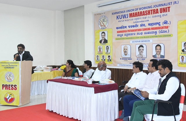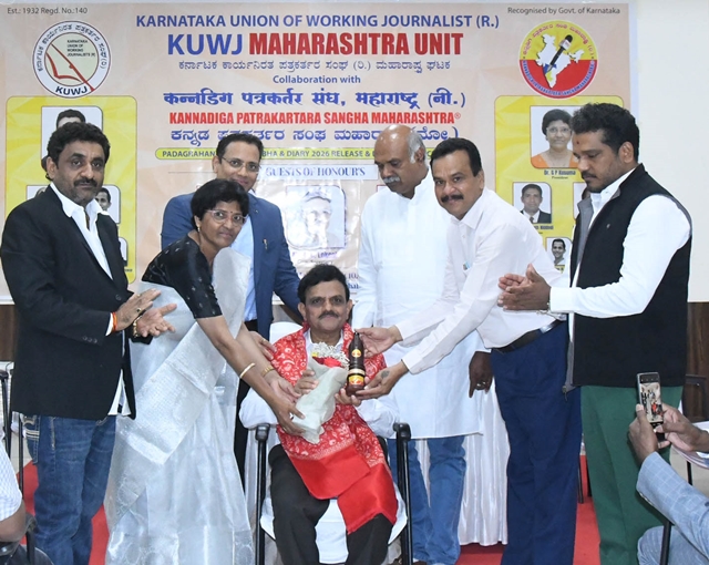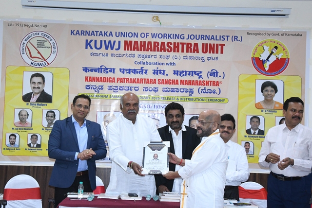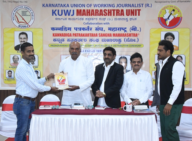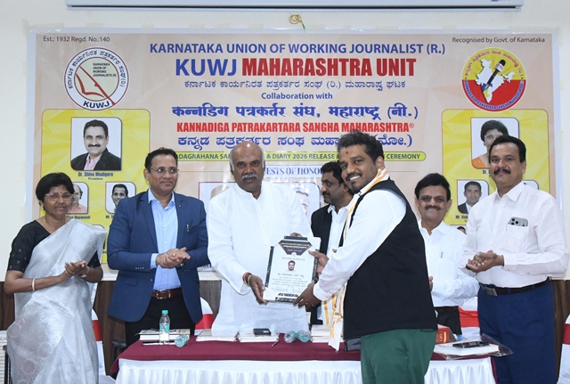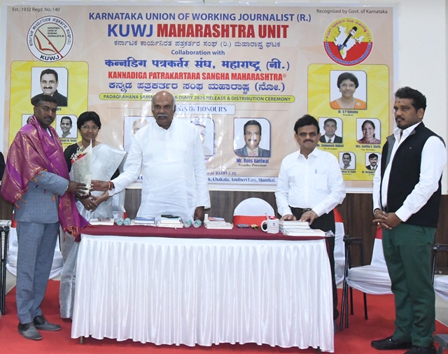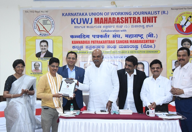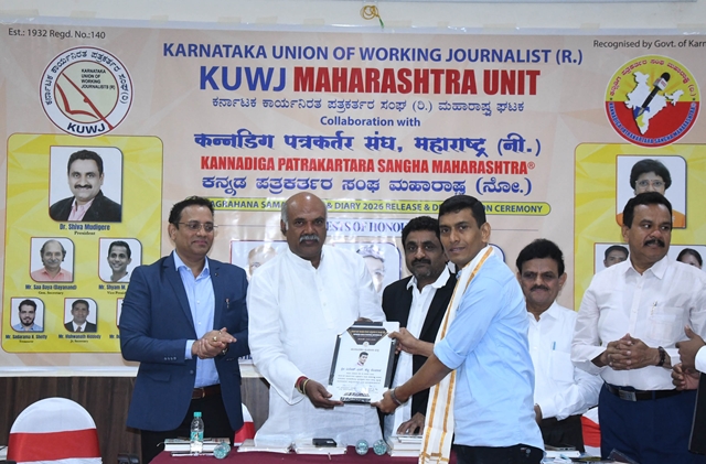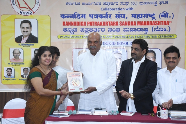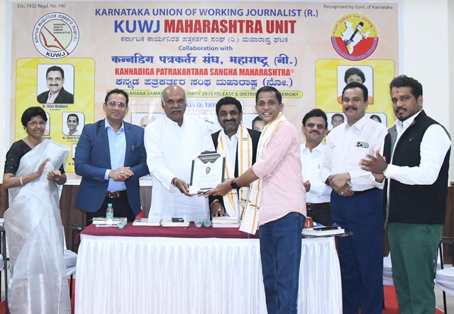 During the function, the KWJA Maharashtra 2026 diary was released, and appointment letters were presented to the newly elected office-bearers. Dr Shiva Moodigere, elected as state president, and Sadarama N Shetty, honorary treasurer, received symbolic certificates and officially assumed office. Tagaduru addressed the gathering, saying, “In our lifetime, the most important achievement is winning people’s hearts. Reach people’s hearts with integrity, remain objective, and turn your journalistic privilege into a fulfilling life. Cherish the gift of journalism and live a life of gratitude and purpose.”