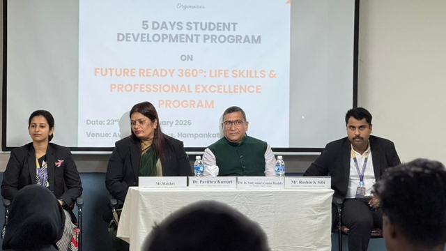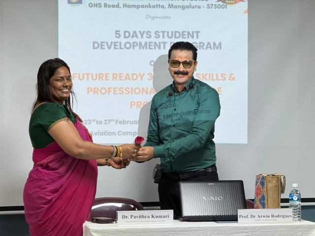 The five-days student development program commenced on February 23 with the inaugural program by the vice-chancellor Dr K. Satyanarayana Reddy and delivered the first session on “Spread Your Wings, Chart Your Skies: Becoming Future-Ready in a World That Won’t Wait,” urging students to enhance their skills, practice continuous learning, and develop leadership and discipline to succeed in a fast-changing world. Lanster Melroy, safety officer at Air India SATS, provided practical insights into airport ground operations and apron safety procedures. Sri Ranjan Bellarpady emphasized character building and social responsibility in his address on “Transforming Self to Transforming India.”