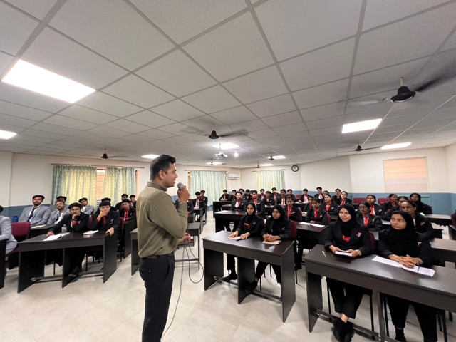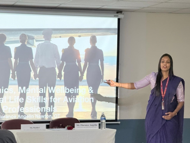 On day three, the sessions focused on holistic development and industry skills. Florance Angelin discussed ergonomics and mental wellbeing. Roopesh addressed aviation marketing strategies, and Prof Dr Arwin Rodrigues conducted an interactive session on effective English communication.