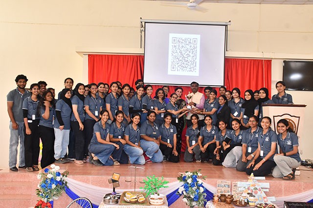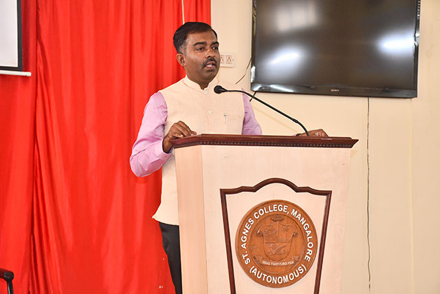 Chief guest of the day, Dr B K Prashanth, MD, PhD (ayurveda), principal, Prasanna College of Ayurveda and Hospital, Belthangady delivered an enlightening lecture on the theme “Underlying Scientific Basis of Indian Traditions and Practices”. He explained the scientific principles behind various Indian traditions such as greeting with Namaste, drawing rangoli, wearing traditional attire suited to climatic conditions, the ecological importance of sacred groves, and the health benefits of intermittent fasting. He emphasized how traditional knowledge systems like Ayurveda are based on observation, logic, and experimentation, and how they can be understood through modern scientific perspectives.