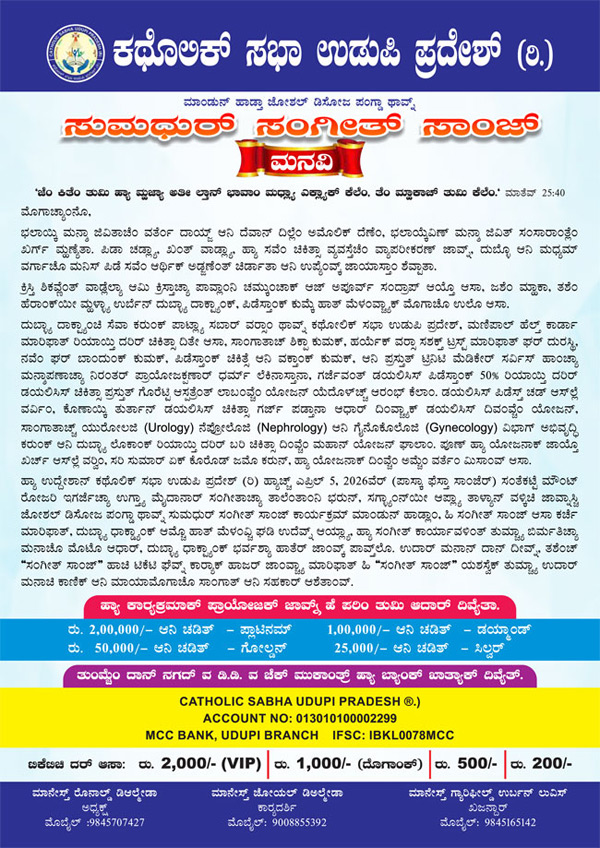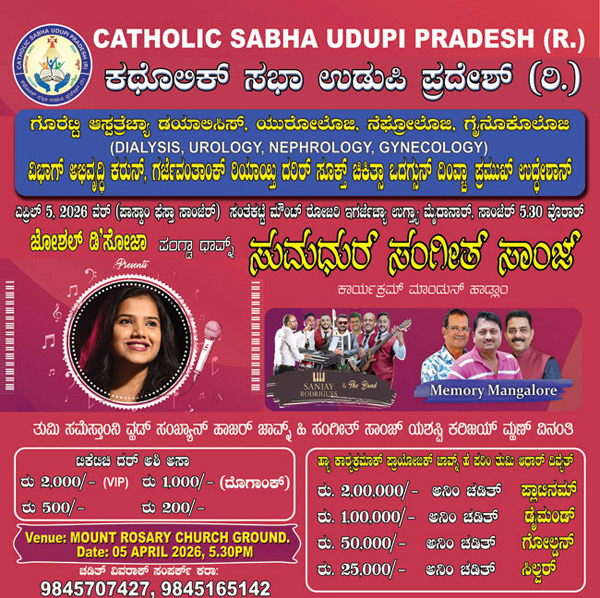 Title: Catholic Sabha Udupi to host ‘Sumadhur Sanz’ musical nite on Apr 5 to support Goretti Hospital