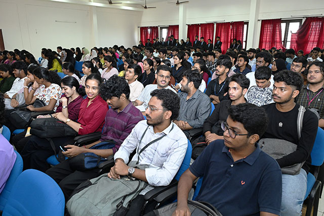 Yatheesha K S spoke on innovation and leadership in a data-driven era, underlining the importance of adaptability and the ethical use of artificial intelligence. He called on students to cultivate entrepreneurial thinking and resilient mindsets to thrive in a dynamic global business landscape.