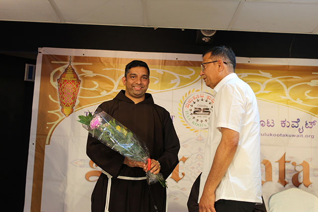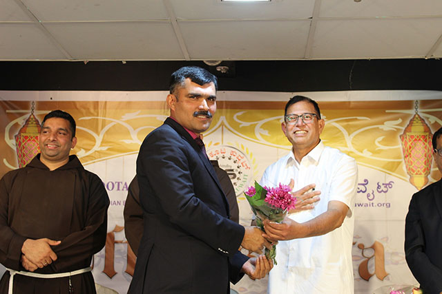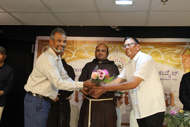 The evening’s programme was hosted by the multi-talented TKK member Lionel Rayan Mascarenhas, who welcomed the gathering and highlighted the importance of unity, service, and compassion during Ramadan. He also introduced the distinguished guests of the evening including Abdul Razak Nitte, manager of Badr Medical Center Kuwait; Fr Darrel Fernandes, parish priest of Our Lady of Arabia Basilica; Fr Avil Rosario, assistant parish priest of St Daniel Comboni Church; and Dr Surendra Nayak, former president of the Indian Doctors Forum Kuwait. The dignitaries were warmly welcomed and honored with flower bouquets by Vijay Kuwar Kairangala.