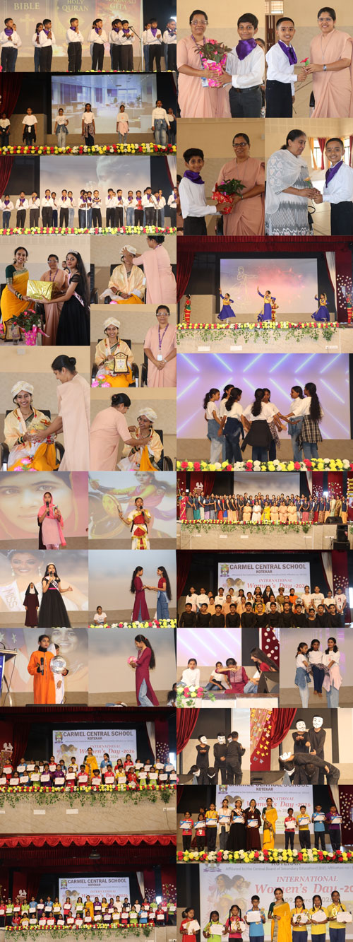 Mangaluru, Mar 10: Carmel English Medium Higher Primary School, Kotekar, CBSE, celebrated International Women’s Day with great fervor and reverence in the school auditorium. The event was organized under the theme 'Give to Gain', served as a powerful tribute to the resilience, sacrifices, and unwavering strength of women who shape our families and society. The occasion was graced by the chief guest, Remona Evette Pereira, a renowned Bharatanatyam dancer and Golden Book of World Records holder. She was accompanied on the dais by the principal, Sr Pramila, administrator Sr Julie Ann, and vice principal Sr Anitha.