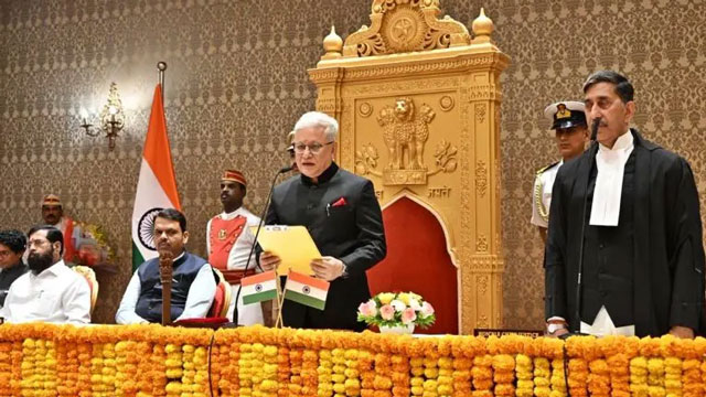 Chief Minister Devendra Fadnavis and Deputy Chief Ministers Eknath Shinde and Sunetra Pawar congratulated the newly appointed Governor by presenting bouquets. Following the swearing-in ceremony, the Indian Navy accorded him a ceremonial guard of honour.