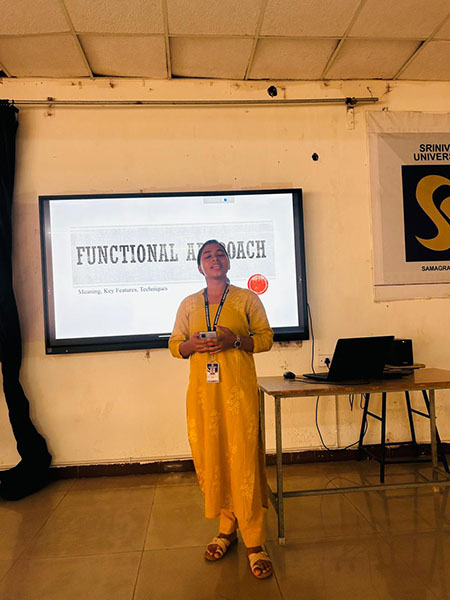 The resource person highlighted that the functional approach focuses on understanding the purpose and functions of human behaviour and mental processes. She explained how this perspective helps in analysing how individuals adapt to their environment and how psychological processes serve specific roles in everyday life.