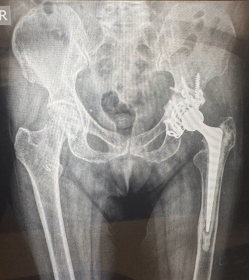 Given the complexity of the case and the patient’s advanced age, the orthopaedic team undertook a detailed clinical assessment and multidisciplinary planning before proceeding with surgery. The surgical team performed a revision total hip replacement using an antiprotrusio cage, a specialised implant designed to reconstruct the hip socket and provide strong structural support when bone strength is compromised.