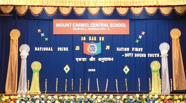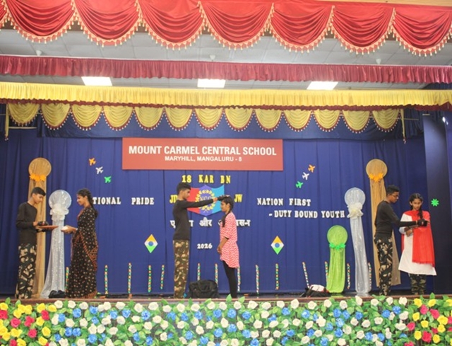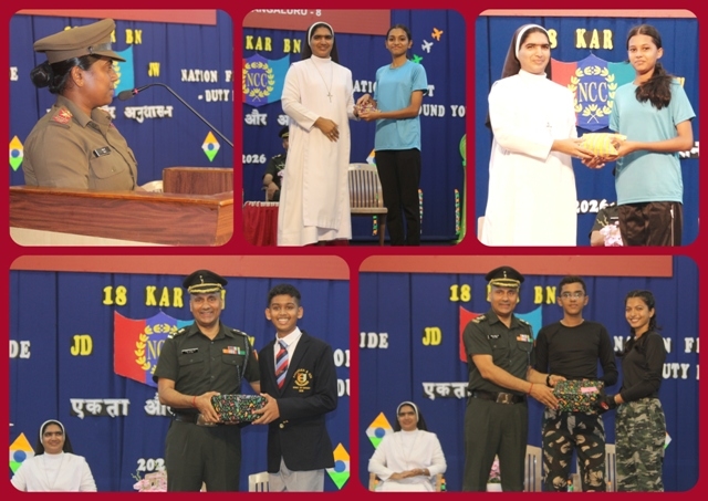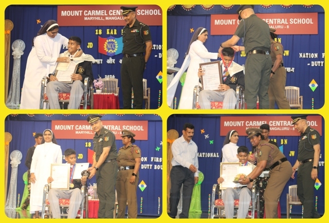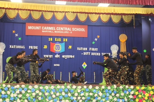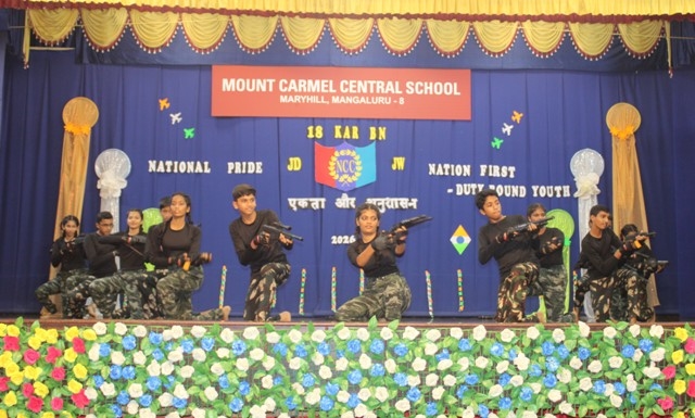 Mangaluru, Mar 13: Mount Carmel Central School, Mangaluru celebrated NCC Day 2026 on March 11 with great pride and patriotic fervour in the school auditorium. The programme, centred on the theme “National Pride”, reflected the core values of unity, discipline, and selfless service upheld by the National Cadet Corps (NCC).