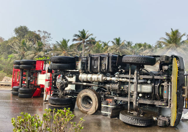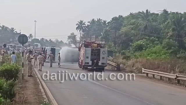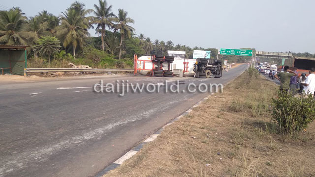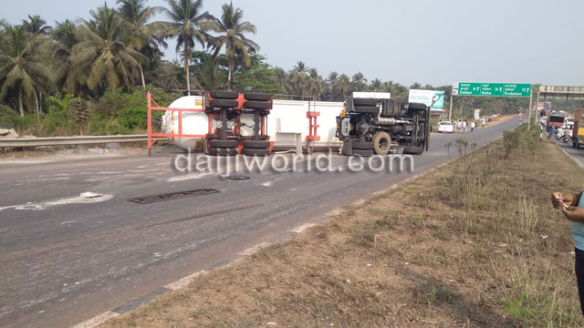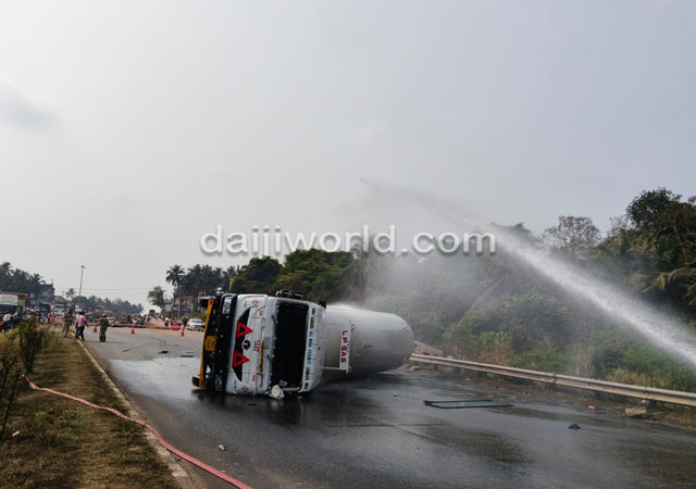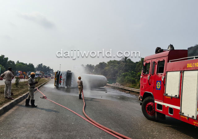 According to preliminary information, the tanker lost control and overturned near the diversion meant for vehicles travelling from Mangaluru towards Udupi. The exact cause of the accident is yet to be ascertained.