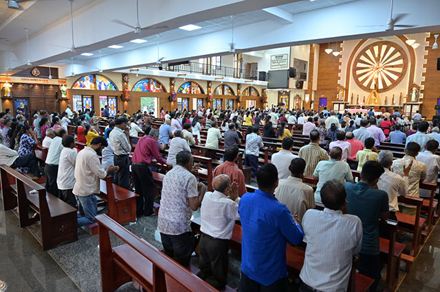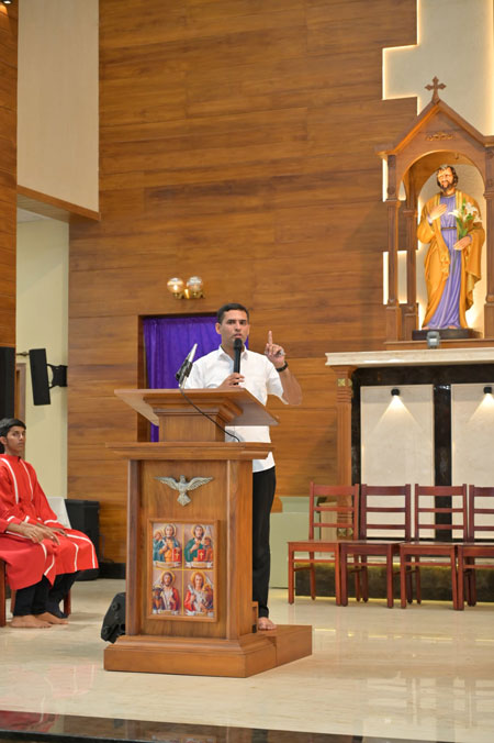 Br Prashanth Frank from the Krupabhisheka Prayer Ministry led the faithful in a powerful time of praise and worship, invoking the presence of the Holy Spirit and inviting all to experience God’s grace. He prayerfully guided the congregation through the stations of the cross, helping them deeply contemplate the Passion of Christ — His suffering, sacrifice, and immense love for humanity. Each station brought the faithful closer to understanding how Jesus endured pain and ultimately gave His life for all.