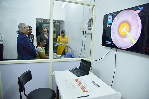The newly inaugurated lab is equipped with advanced simulation and wet lab facilities, including the EyeSi Surgical Simulator (Haag Streit) with cataract and vitreoretinal surgery modules, an advanced microsurgical wet lab, a phacoemulsification training system (Alcon Laureate Phaco System), and high end operating microscopes such as the Zeiss Opmi Visu S7 Operating Microscope.