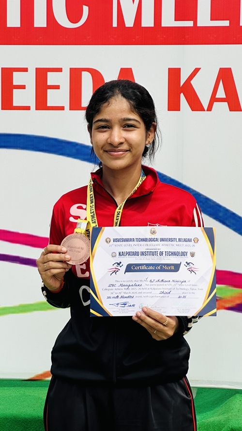 Individual Achievements: Kushi Salyan (IV Sem ECE) – 1st Place, Hammer Throw, Mounish H Shetty (II Sem MBA) – 1st Place, Long Jump, Anagha K A (IV Sem CSE) – 1st place, 400m Hurdles, Thanvi S (IV Sem ECE) – 2nd place, 400m, G J Chithara Hirinja (VI Sem ECE) – 3rd place, 100m Hurdles