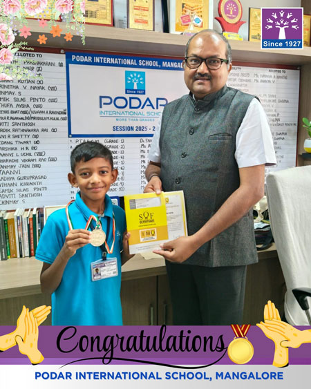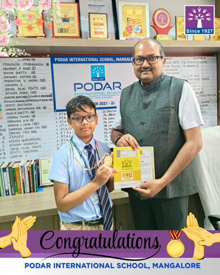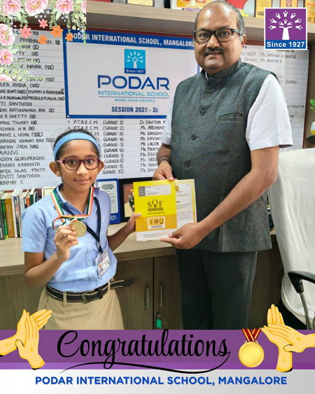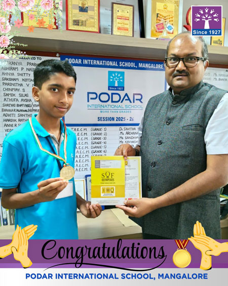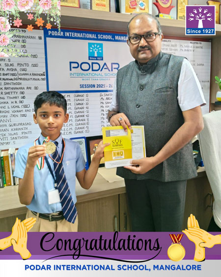 Mangaluru, Mar 30: Podar International School Mangaluru delighted to share the outstanding achievement of students in the SOF International Mathematics Olympiad (IMO) 2025-26, conducted by the Science Olympiad Foundation.