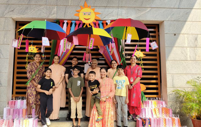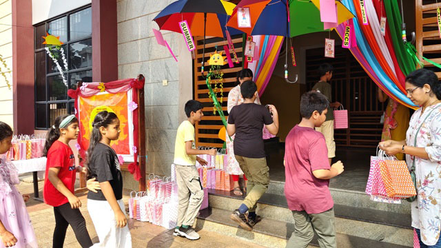 Camp coordinator, Neetha, extended a heartfelt welcome to the campers, dignitaries, parents, and teachers. A special highlight of the inauguration was the creative unfolding of three rainbow-coloured umbrellas, from which cheerful words of welcome popped out, adding a touch of magic to the occasion.