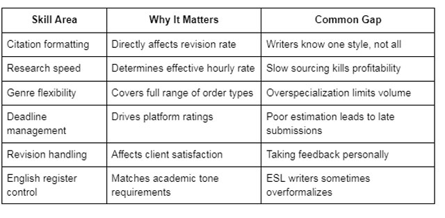 Citation fluency matters more than most newcomers expect. APA, MLA, Chicago, Harvard, Turabian. These are not interchangeable, and clients notice when they are mixed up or applied incorrectly. Writers who treat citation as an afterthought tend to generate revision requests, which eats into their effective hourly rate fast.