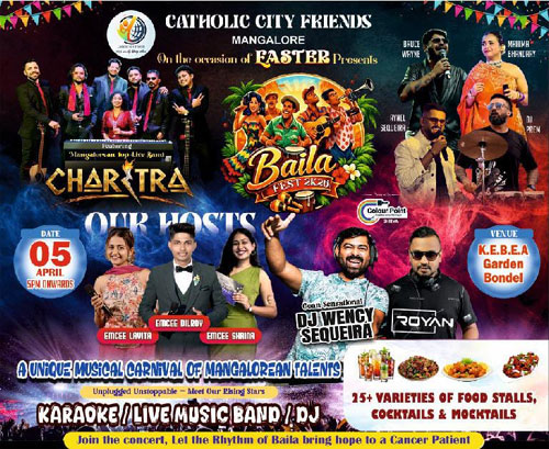 Mangaluru, Apr 3: Catholic City Friends, Mangaluru, is all set to host the city's anticipated musical carnival, 'Baila Fest 2K26', on Easter Sunday, April 5. The grand celebration, designed to bring the community together through the infectious energy of Mangalorean culture, will also serve a humanitarian purpose.