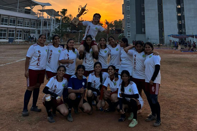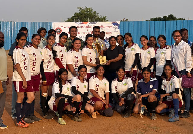 Mangaluru, Apr 12: SJEC women's football team participated and secured the runner-up trophy in VTU State-level Women's Football Tournament held at NIE Mysuru on April 11.
