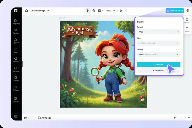 - Pick either "PNG" or "JPG" format from the dropdown list based on platform preference.