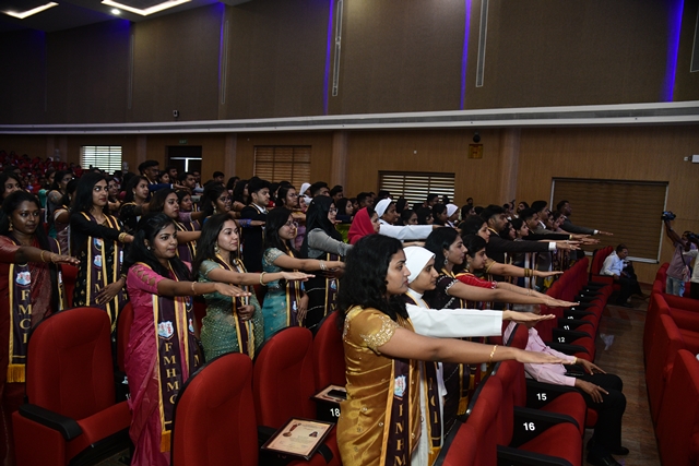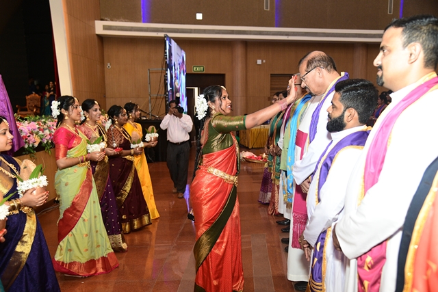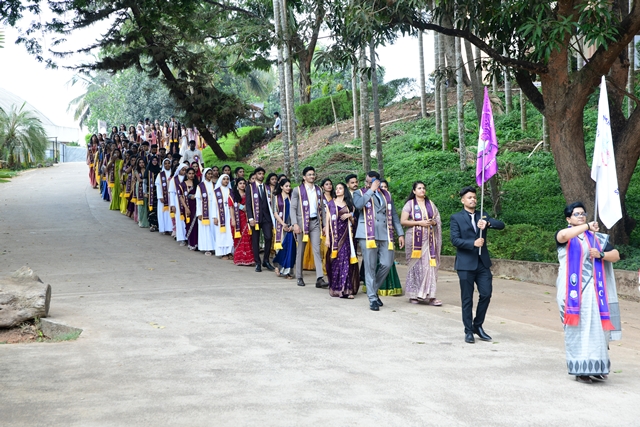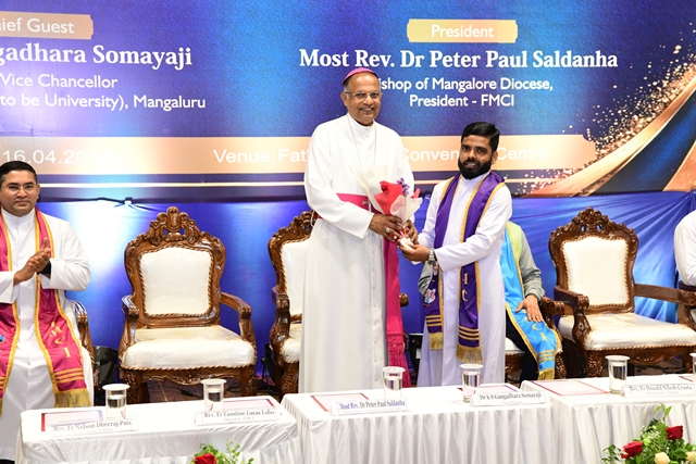 The programme commenced with a solemn procession of graduates accompanied by a ceremonial band and a guard of honour. The dignitaries, including president of the programme Most Rev Dr Peter Paul Saldanha, Bishop of Mangaluru Diocese; chief guest Dr K S Gangadhara Somayaji, vice chancellor of Yenepoya (Deemed to be University); and FMCI director Fr Faustine Lucas Lobo, were accorded a traditional welcome with 'Poornakumbha'.