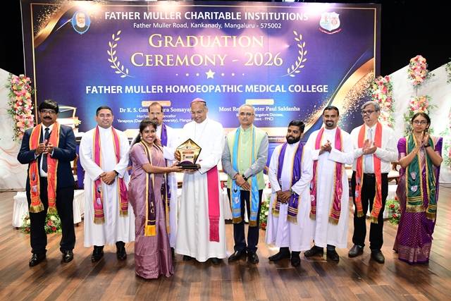 Mangaluru, Apr 16: The 36th graduation ceremony of Father Muller Homoeopathic Medical College and Hospital (FMHMC&H) was held on Thursday, April 16 at the Father Muller Convention Centre, Kankanady.