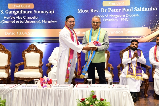 Fr Donald Nilesh Crasta proposed the vote of thanks. The ceremony, compered by Dr Shreyank S Kotian and Dr Mable P Andrade, concluded with the institutional anthem. Earlier in the day, a thanksgiving Eucharistic celebration was offered by Fr Roshan Crasta at Our Lady of Lourdes Chapel, Deralakatte.