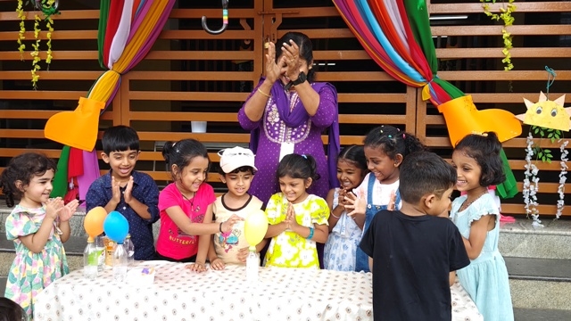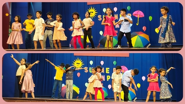 The cultural segment added colour and vibrancy to the event. The UKG campers presented a beautiful fusion folk dance of Tulu, Kannada, and Konkani traditions, while the tiny tots of Nursery and LKG charmed the audience with their lively performance to the “Boom Boom Jungle” song. The senior campers raised the energy levels with spectacular performances in six groups, dancing to popular songs from various languages.