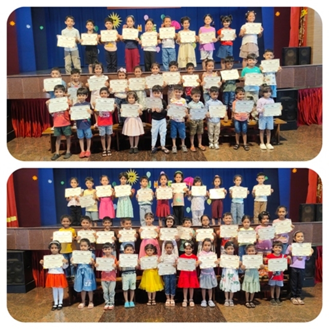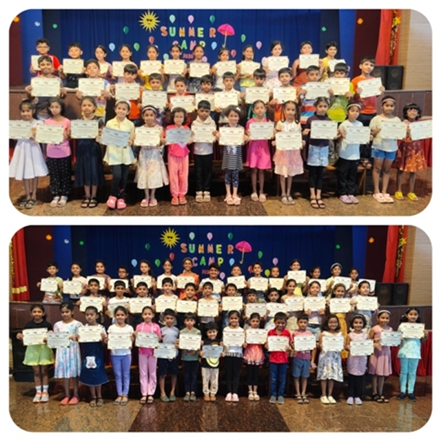 The senior campers too took the stage, enthusiastically recounting their experiences. They reflected on a vibrant and activity-packed camp that included creative explorations, interactive sessions, the colourful umbrella walkathon, clay modelling, the joy of outdoor games and hands-on activities that nurtured teamwork, confidence, and self-expression. They also highlighted the enriching personality development sessions and their scientific discoveries, making their journey both enjoyable and meaningful. The senior speakers included Avika Ravindra, Kiara Viegas, Medha Padiyar and Ruth Madtha.