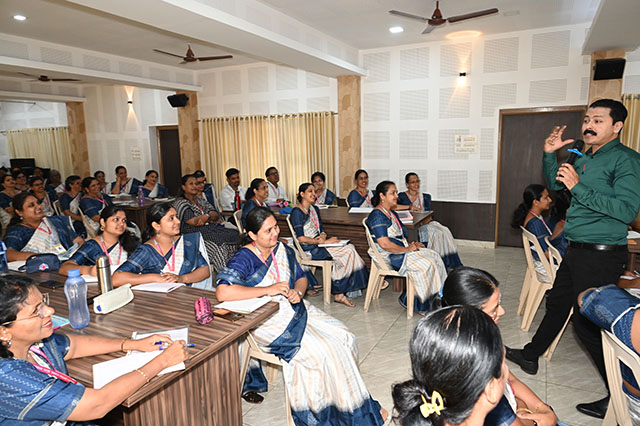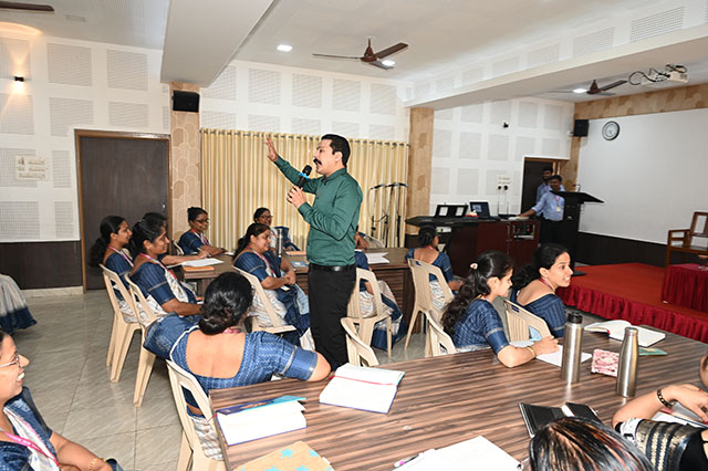 The workshop commenced with a prayer followed by a formal inauguration ceremony, including lighting of the lamp and felicitation of the resource person. Addresses by the secretary, manager, and principal set a motivating tone for the sessions.