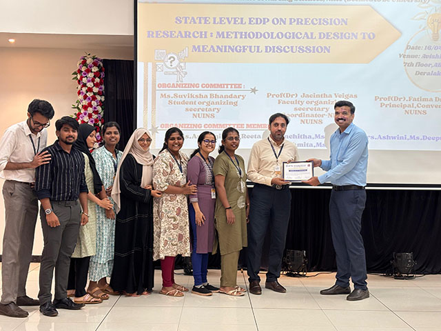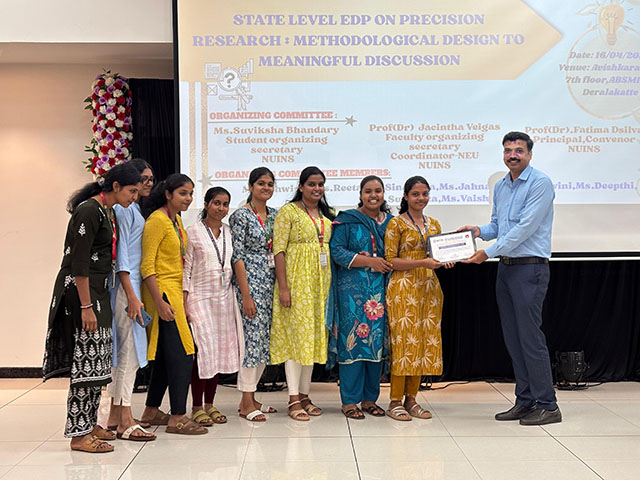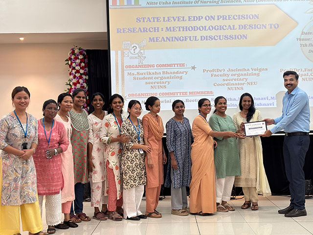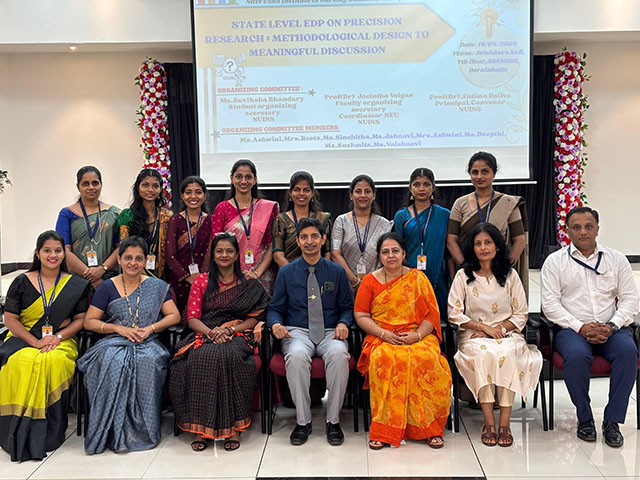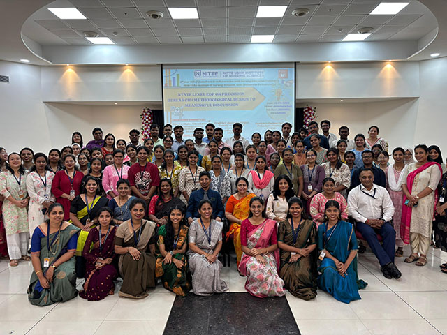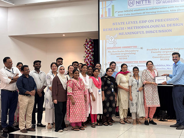 Mangaluru, Apr 21: The Nursing Education Unit (NEU), Nitte Usha Institute of Nursing Sciences, in collaboration with first-year MSc Nursing students, organized a state level Executive Development Programme (EDP) on 'Precision Research: Methodological Design to Meaningful Discussion' aligned with SDG 4 to enhance quality education, on April 16th at Avishkar Hall, AB Shetty Dental College, Mangaluru.
