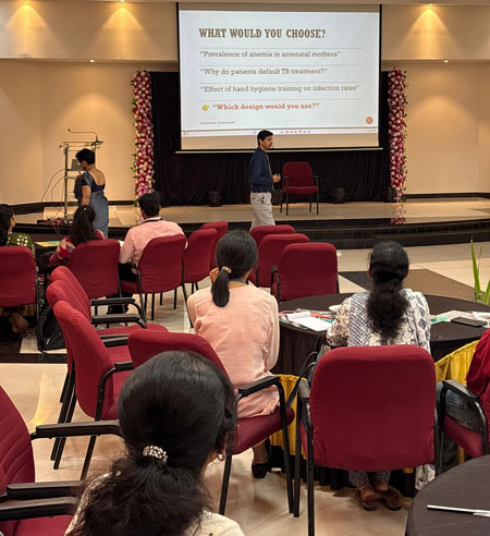 The programme focused on key areas such as mixed methods and epidemiological research designs, sampling techniques and sample size estimation, critical interpretation of tabulated findings, and effective approaches to writing discussion. The sessions were delivered with practical insights and were followed by group activities that enhanced active participation and experiential learning.