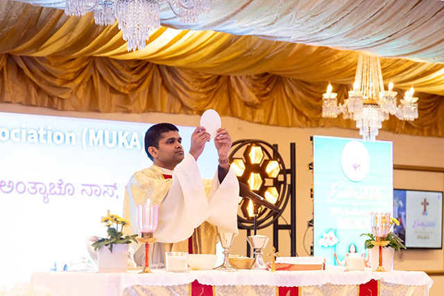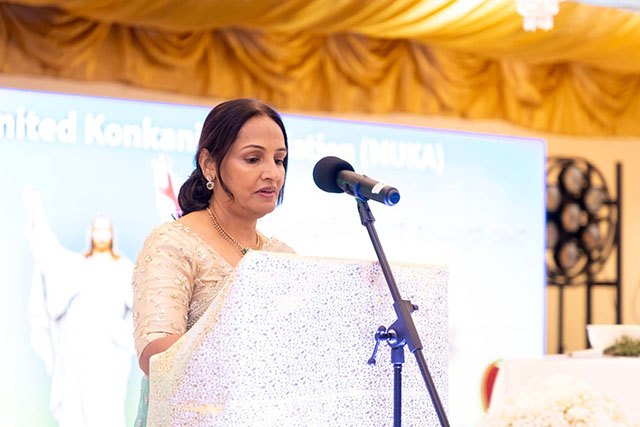 MUKA secretary Dorothy D’Souza, shared the association’s inspiring 20-year journey of community service and cultural preservation. In recognition of their dedication, Fr Jason Pais presented commemorative mementoes to MUKA’s past presidents: Vincent D’Souza, John Fernandes, Deepak Alvares, Sunil D’Cunha, Jeevan Menezes, Stany Sequeira, Pius Rasquinha, and Anson Dias, along with the current president Godfrey Sequeira.