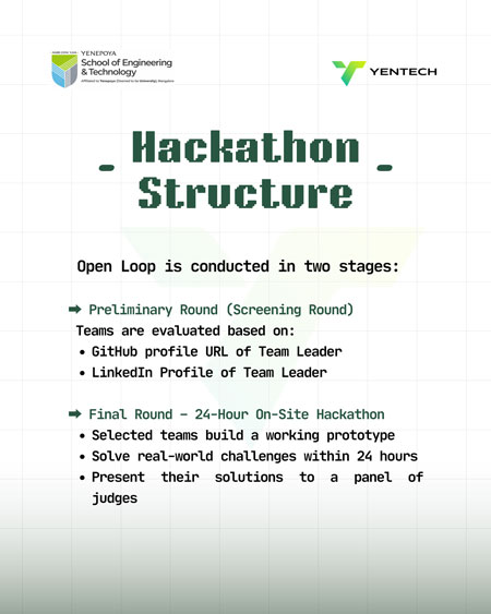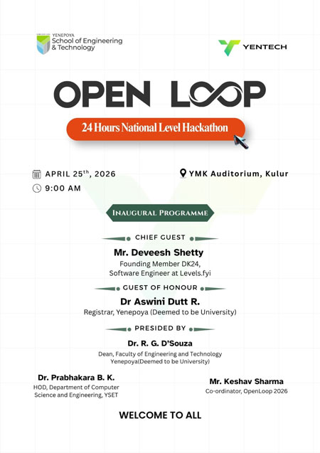 Mangaluru, Apr 22: Yenepoya School of Engineering and Technology (YSET), will host OpenLoop 2026, a 24-hour national-level hackathon, on April 25 and 26, at the YMK Auditorium, Yenepoya Kulur campus.