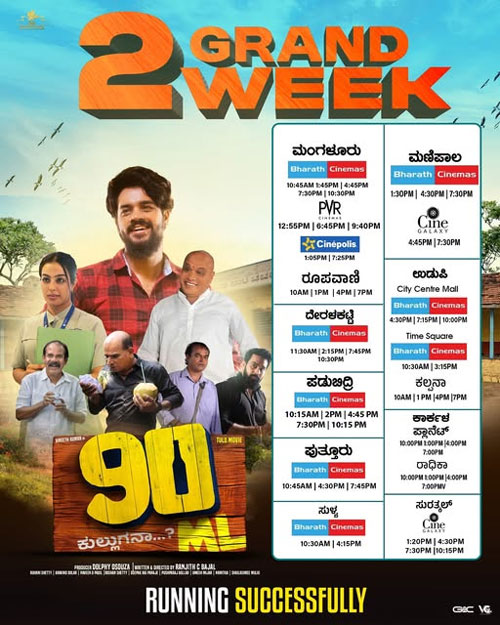 About the film, ‘90 ML’ has been released in Mangaluru, Udupi, Puttur, Beltangady, Padubidri, Surathkal, Karkala, Deralakatte and other places. The film has been shot in various locations across Dakshina Kannada district.