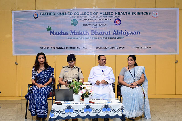 Mangaluru, Apr 25: Father Muller College of Allied Health Sciences (FMCOAHS), in association with its NSS Wing, organized a strong awareness programme on anti-ragging and substance abuse on April 20, reinforcing its commitment to a safe, disciplined, and drug-free campus.