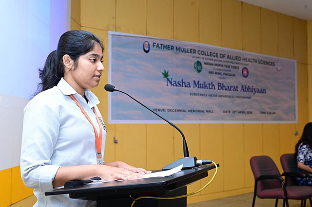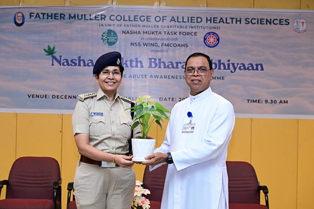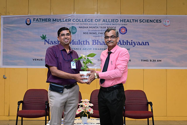Dr Michael Santhumayor, administrator of Father Muller College of Allied Health Sciences, also addressed the gathering, highlighting the serious consequences of drug abuse. He further shared three important instructions for the discipline, growth, and overall development of Allied Health Sciences students.