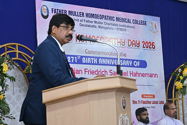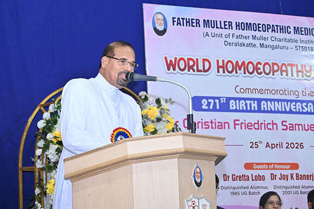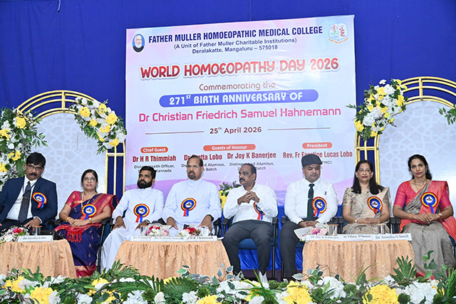Mangaluru, Apr 25: World Homoeopathy Day 2026 was celebrated on Saturday April 25 at Father Muller Homoeopathic Medical College & Hospital (FMHMCH), Deralakatte, commemorating the 271st birth anniversary of Dr Samuel Hahnemann, the founder of homoeopathy.